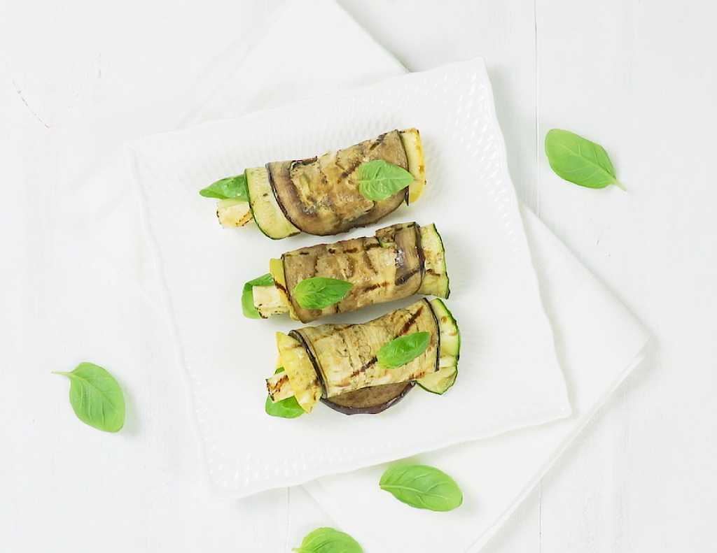 Bouchées d’aubergines et de légumes grillés à la mozzarella