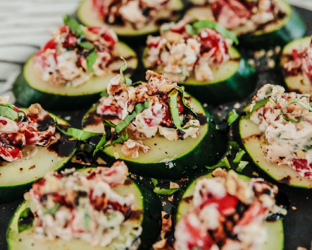 Bouchées de concombre aux tomates, fromage de chèvre et Grenoble