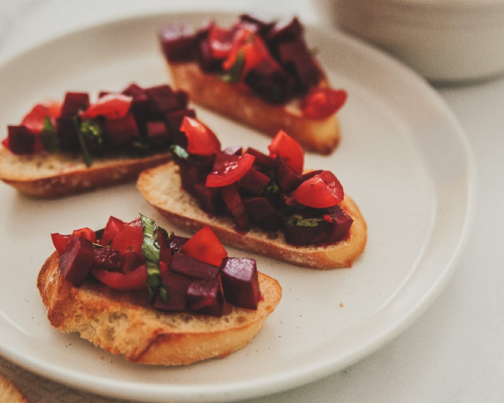 - Au moment de servir, déposer la bruschetta sur les croutons de pain et déguster!