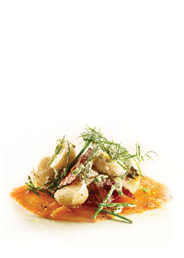 Carpaccio de saumon fumé, vinaigrette à la moutarde de meaux