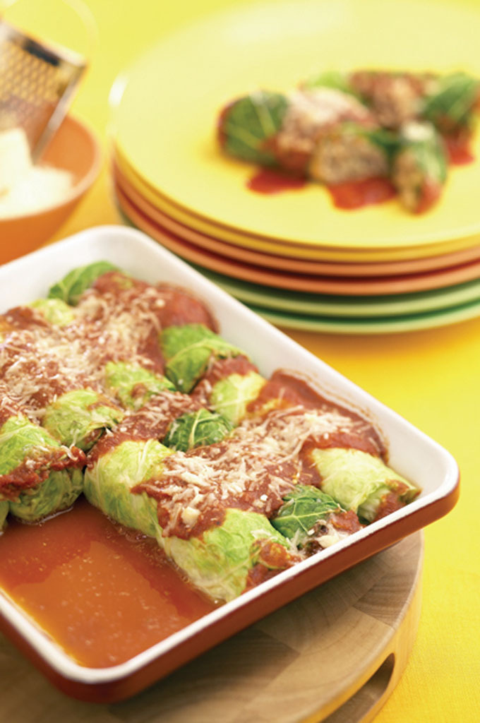 - Répartir le mélange également sur chaque feuille de chou, puis rouler celle-ci sur elle-même de façon à former des ballotins. Réserver.