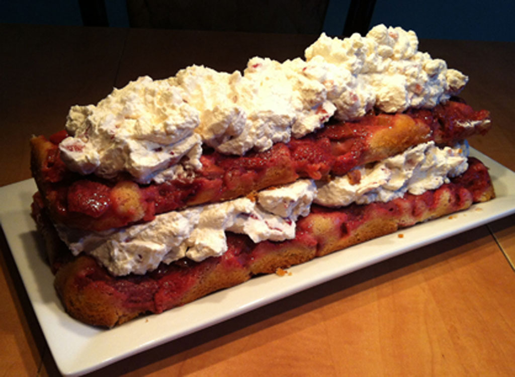 Délicieux gâteau fraises et rhubarbes, à la façon d’un shortcake
