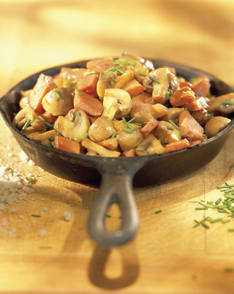Fricassée de champignons et jambon de pays