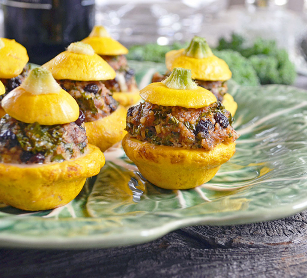 - Dans un grand bol, mélanger tous les ingrédients de la farce. Farcir généreusement les mini-pâtissons et déposer le capuchon sur le dessus. Mettre les mini-pâtissons dans un plat allant au four, couvrir de papier d’aluminium et enfourner à 375°F pendant 30 minutes ou jusqu’à ce que la pointe d’un couteau s’insère facilement dans la chair.