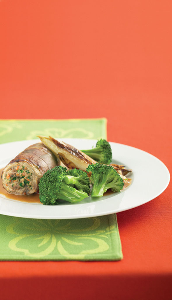 - Dans la même poêle, déglacer les sucs de cuisson au cidre et laisser réduire de moitié. Ajouter le fond de veau, laisser à nouveau réduire pendant 5 minutes et monter au beurre, c’est à dire, hors-feu, ajouter les deux noisettes de beurre et incorporer au fouet. Servir les paupiettes et napper de sauce. Si désiré, accompagner de brocoli et d’endives braisées ou d’un autre légume du Québec de votre choix.
