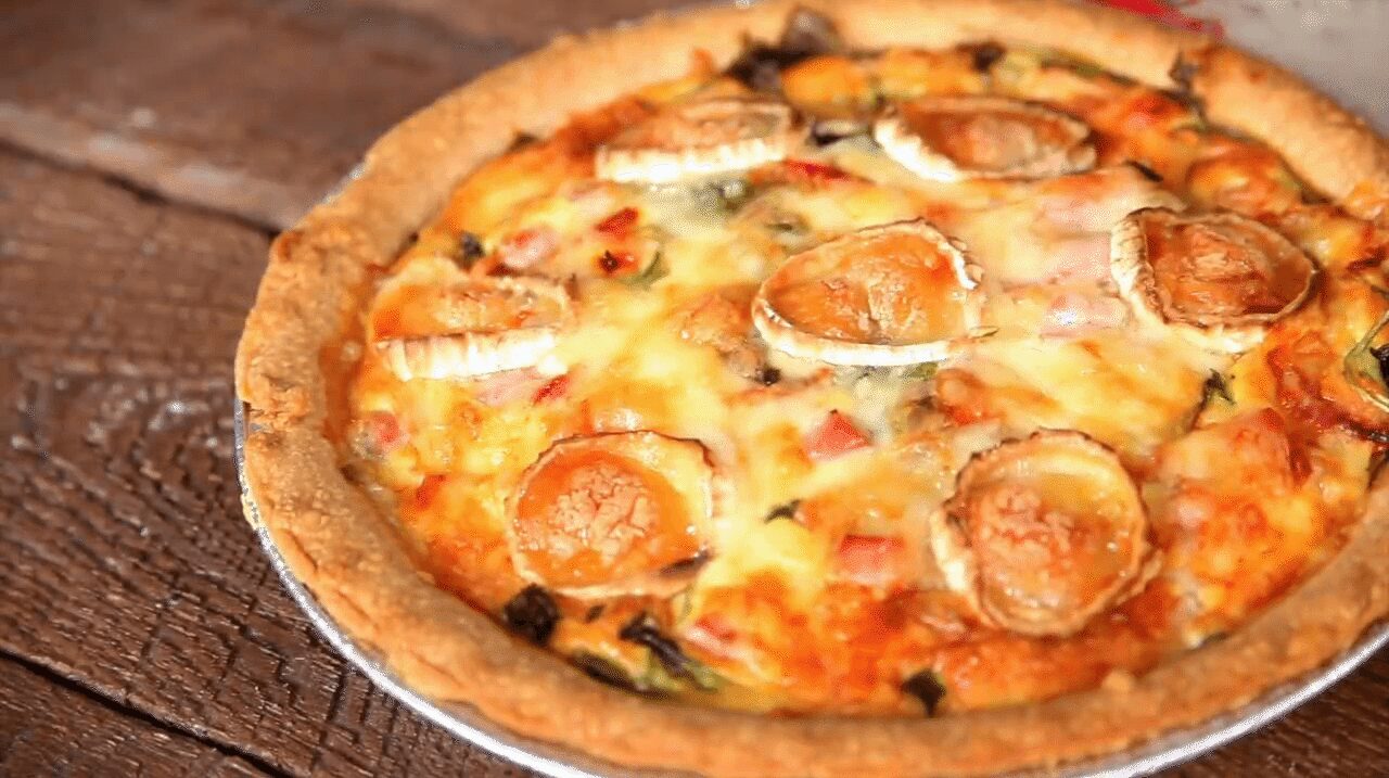 - Garnir de jambon en dés et de fromage mozzarella râpé.