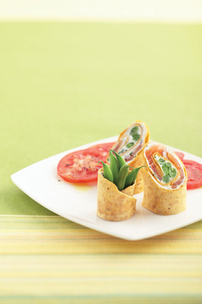 - Dans un petit bol, mélanger le fromage et la ciboulette. Assaisonner et bien mélanger. Déposer les tortillas sur la surface de travail. Répartir le fromage sur les quatre tortillas et bien l’étendre jusqu’au pourtour. Disposer les haricots sur la partie avant des tortillas puis disposer le saumon fumé au centre. Déposer des lamelles d’oignons rouges sur le saumon puis rouler.