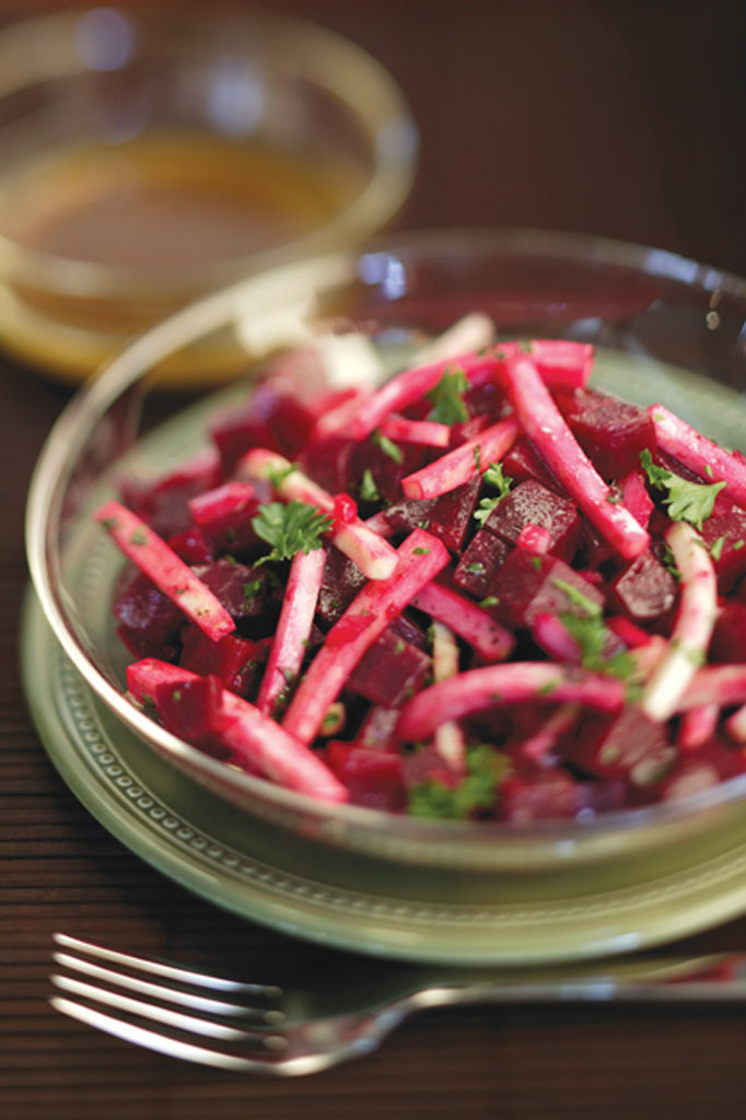 * Le petit truc du chef Julien: La betterave est un légume que j’affectionne particulièrement. On la consomme très souvent en marinades ou en vinaigrette ; essayez-la nature, avec un soupçon de beurre. Au moment de la peler, laissez-lui un petit bout de tige. C’est plus joli dans l’assiette.