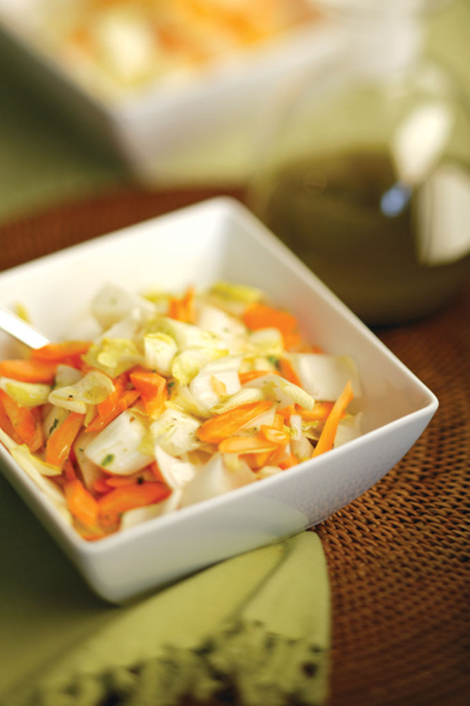 Salade de carottes et d’endives aux pignons, miel et gingembre