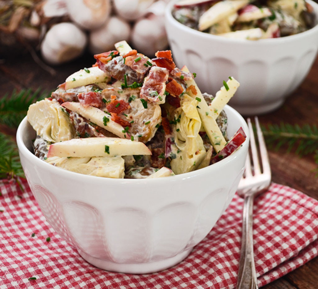 - Mettre tous les ingrédients de la salade dans un grand saladier. Ajouter la vinaigrette et rectifier l’assaisonnement.