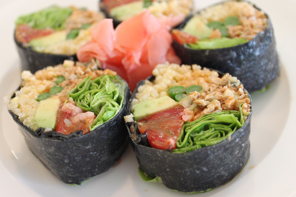 - Une fois tous les ingrédients prêts, passer une feuille de riz sous l’eau et la déposer sur une planche à découper propre, superposer une feuille de nori sur la feuille de riz.