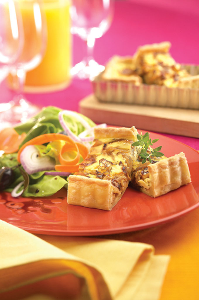 - Faire cuire au four 30 à 35 minutes ou jusqu’à ce que la tarte soit bien dorée et le mélange d’œufs bien ferme.