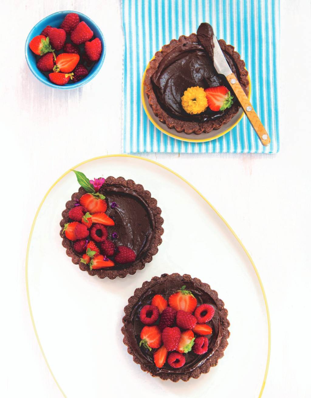 - Garnir les 4 tartelettes de ce mélange d’avocat, et décorer généreusement de fraises et de framboises.