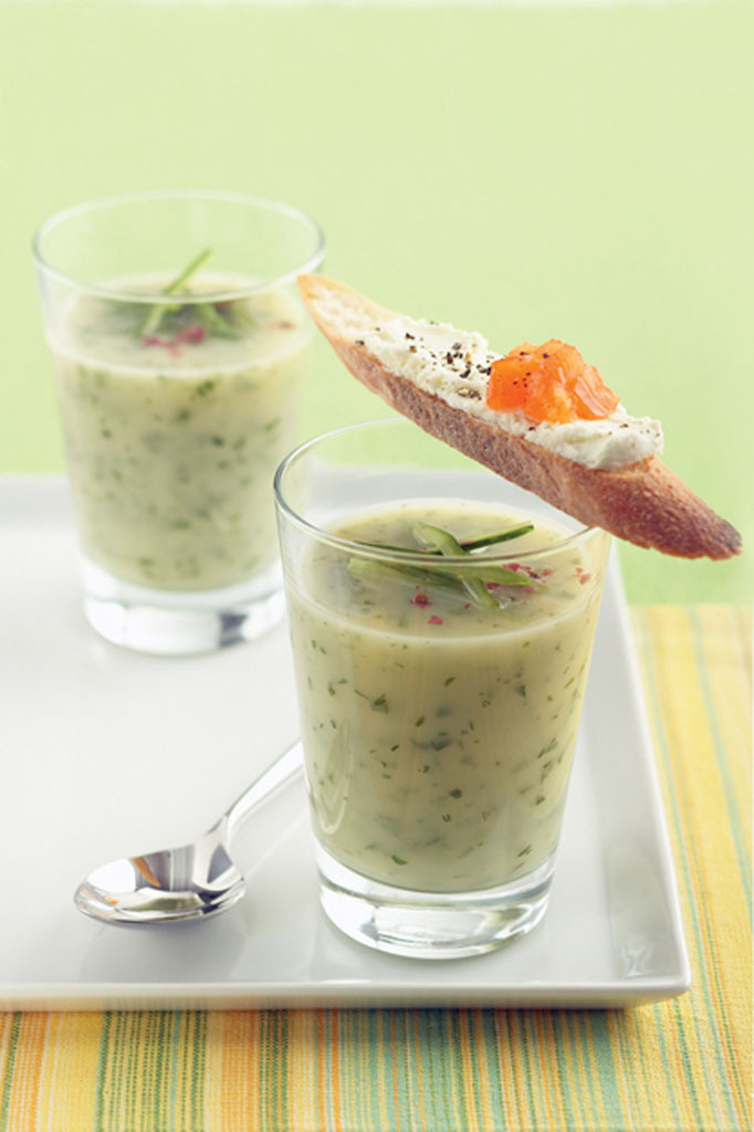 Velouté de concombre et croûton de chèvre
