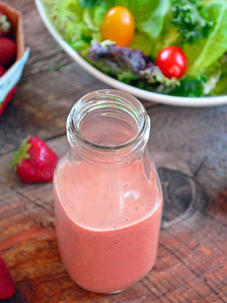 - Au mélangeur ou à l’aide d’un pied-mélangeur, réduire en purée lisse tous les ingrédients. Rectifier l’assaisonnement avec le sel ainsi que le poivre et verser sur votre salade préférée.